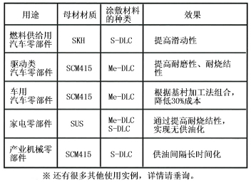 DLC擁有高硬度和固體潤滑性,不僅應用在工具、模具上,而且還應用在家電、汽車等金屬零部件上。